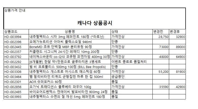 품절 및 가격 변동에 대해 안내드립니다. 판매에 참조하시길 바랍니다.