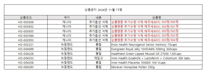 상품 안내 20241115 페이지 정보 작성자 나누리솔루션 댓글 0건 조회 351회 작성일 24-11-15 21:25 본문 품절 및 제품명 정정을 해 주시길 바랍니다. 목록 이전글오아시스 상품옵션 정정공지 24.11.23 다음글캐나다 상품 공지 24.11.14 댓글목록 댓글목록 등록된 댓글이 없습니다.