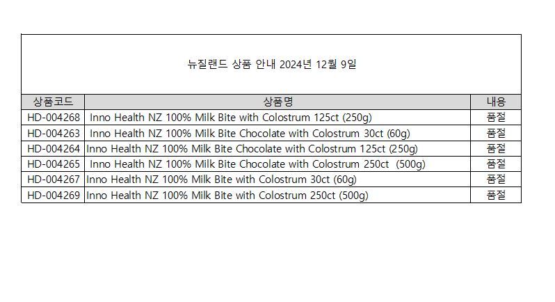 뉴질랜드 상품공지 20241209 품절상품 페이지 정보 작성자 나누리솔루션 댓글 0건 조회 341회 작성일 24-12-09 16:33 본문 품절상품 안내 목록 이전글뉴트리돔 공급가격 공지 24.12.11 다음글202412월 상품가격 공지 24.12.05 댓글목록 댓글목록 등록된 댓글이 없습니다.