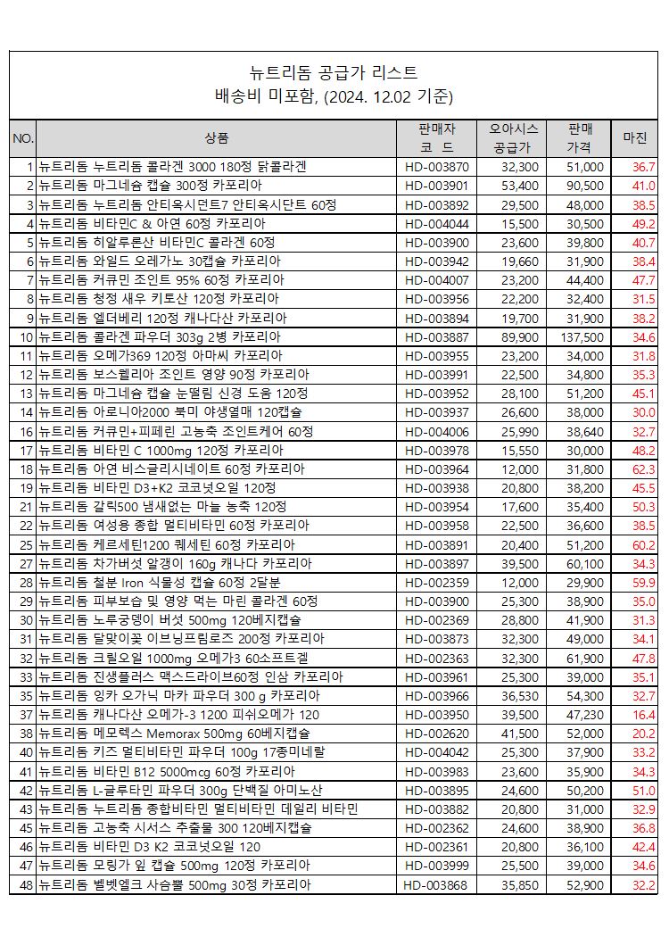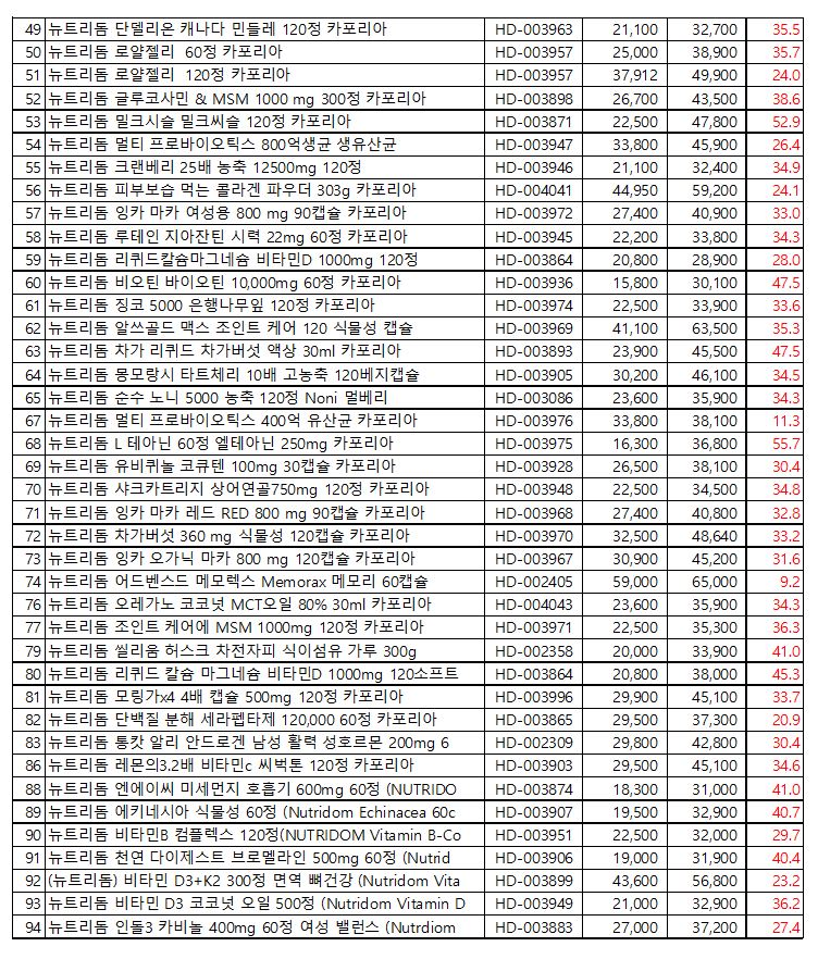 뉴트리돔 공급가격 공지